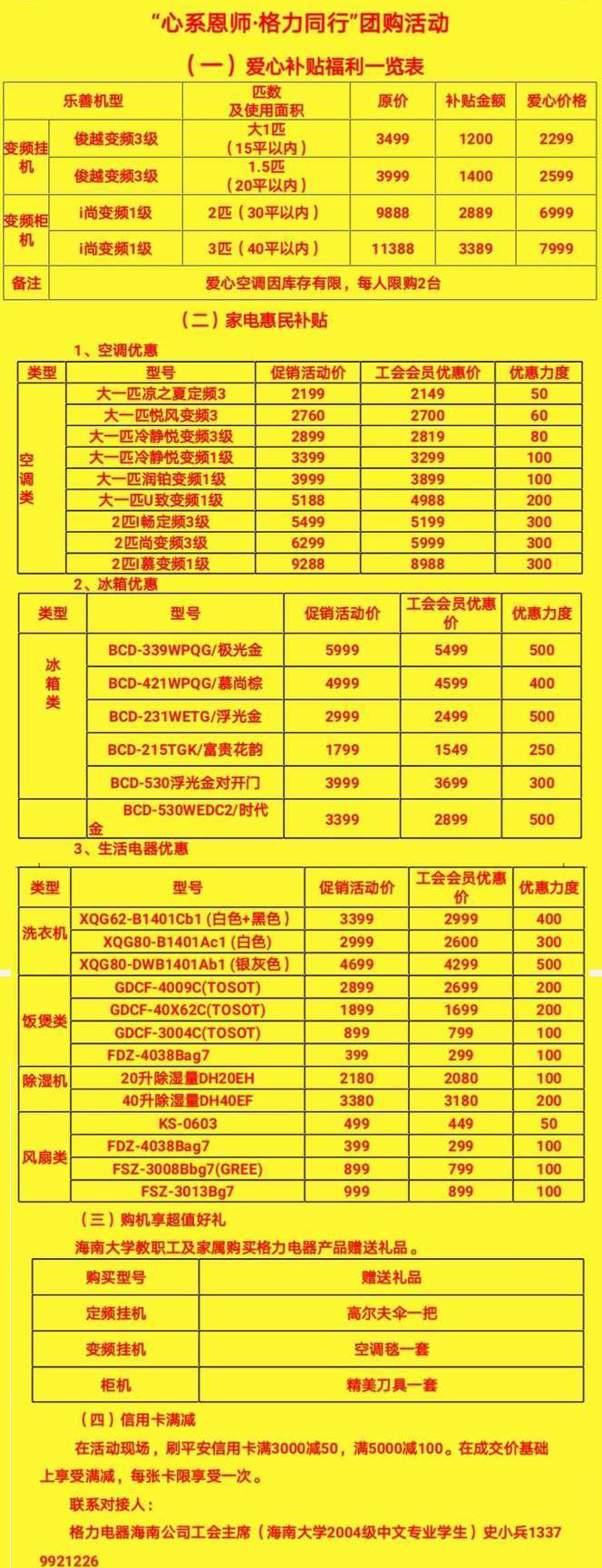 . 为进一步服务教职工,为全校教职工做好事、办实事,值此第35个教师节来临之际,校工会联合格力电器海南公司举办“心系恩师 格力同行”william威廉中文官网教职工团购活动。现将活动有关事项通知如下: