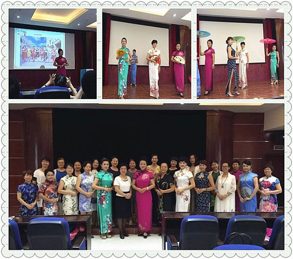 为丰富广大女教职工业余文化生活,提升大家的审美情趣和衣着品味。9月20日下午,在图书馆多功能报告厅,校工会女工委与图书馆工会联合举办了一场“中国旗袍文化”专题讲座,作为教师节和中秋节“双节的礼物”奉献给广大女教职工。 主讲人以图文并茂的形式,用大量精美的旗袍着装图片及影视片段的分享,为大家讲述了中国女性传统服饰旗袍的历史与演变,旗袍的礼仪与文化。特别是现场表演的优雅、高贵的“旗袍秀”,更是吸引了观众的极大兴趣,大家纷纷上场,参与互动,享受了一场传统文化的精神盛宴!