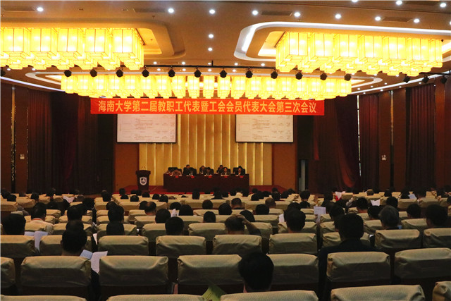 会上,李建保代表学校向大会作工作报告。报告指出,一年来,学校坚决贯彻落实以习近平同志为核心的党中央的决策部署和总书记系列重要讲话精神,紧密围绕“创一流、建百强”的奋斗目标,全面落实立德树人根本任务,坚持全面从严治党,着力提升学生的社会竞争力和教师的学术影响力,取得了一些突出成绩和标志性成果——成功组建热带农林学院、国家重点实验室获批、国际旅游学院在认真筹建中、创新创业教育水平显著提升、冬季小学期初步形成品牌、科研创新竞争力持续提升、深化改革教师绩效量化考评体系、持续改善民生福祉、扎实开展精准扶贫工作,财务保障能力显著增强。学校在人才培养、师资队伍建设、科研与服务、国际交流与合作、条件建设等诸多方面取得了不少新成绩。