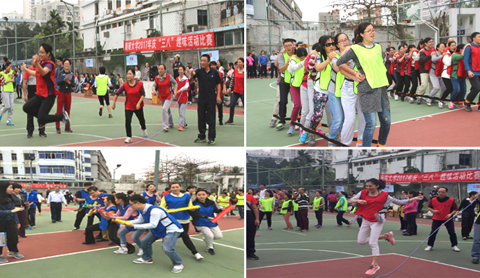 3月7日下午,庆祝“三八”国际劳动妇女节女教职工趣味活动在教工篮球场举行,全校22个分会近600人次参加本次活动。校工会副主席杨红代表工会向全校女教职工送去节日的祝福,对全校女教职工为推动学校发展建设和构建和谐家庭做出的积极贡献表示衷心的感谢。