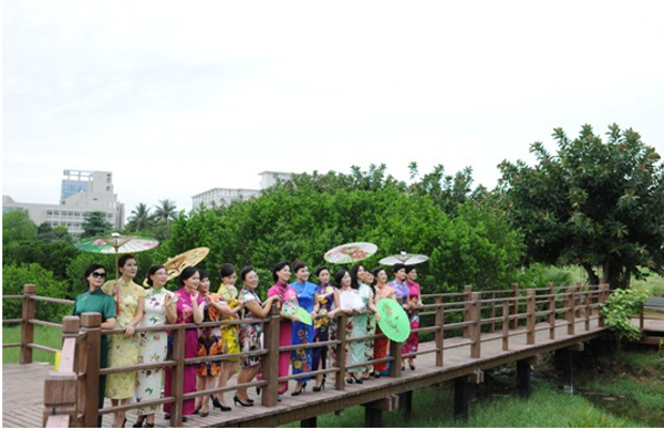 . 海大旗袍协会会长王志芳主持了联欢活动,校工会专职副主席杨红、中国旗袍协会海南总会暨海口市旗袍协会会长陈洪波女士到场并参加了即兴表演。