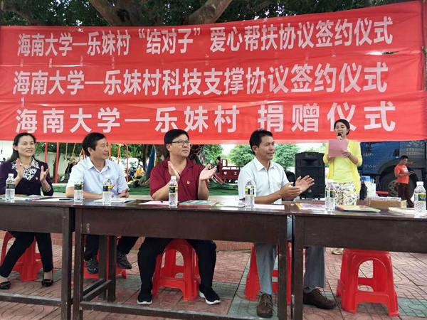 活动当天,学校领导和相关部门人员与乐妹村的村民们重温了入党誓词,并签订了科技帮扶、爱心帮扶等协议,共同建立了志愿服务基地和学生素质教育实践基地。