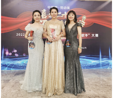 陈蓉(中)和于赫(左)老师荣获“十大歌手”称号