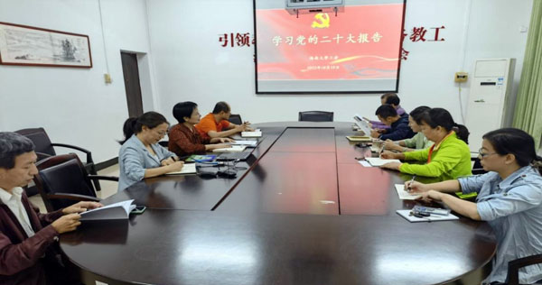 10月19日上午,校工会在工会办公楼307室组织召开工会全体干部职工会议,深入学习习近平总书记在中国共产党第二十次全国代表大会开幕会上所作的报告,持续推进贯彻落实党的二十大精神。校工会常务副主席杨红主持会议。