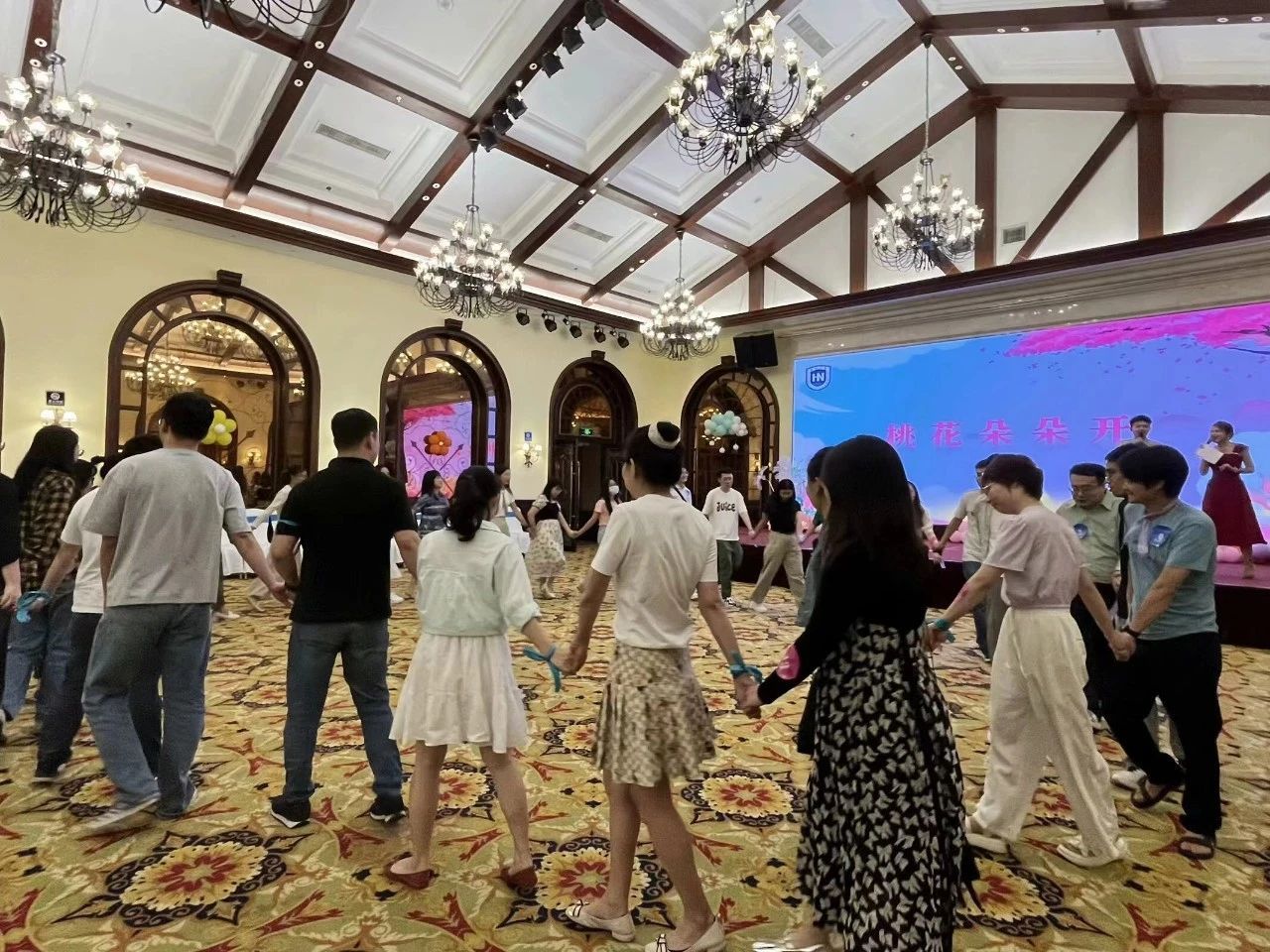 桃花朵朵开、缘行千里、快乐赶猪、欢乐交响曲等一系列精心设计的互动小游戏,迅速拉近彼此的距离,男女搭配、团结协作,将活动的氛围推向高潮,青年才俊们的才艺展示也赢得阵阵掌声。现场欢声笑语不断,心动指数也直线“飙升”。