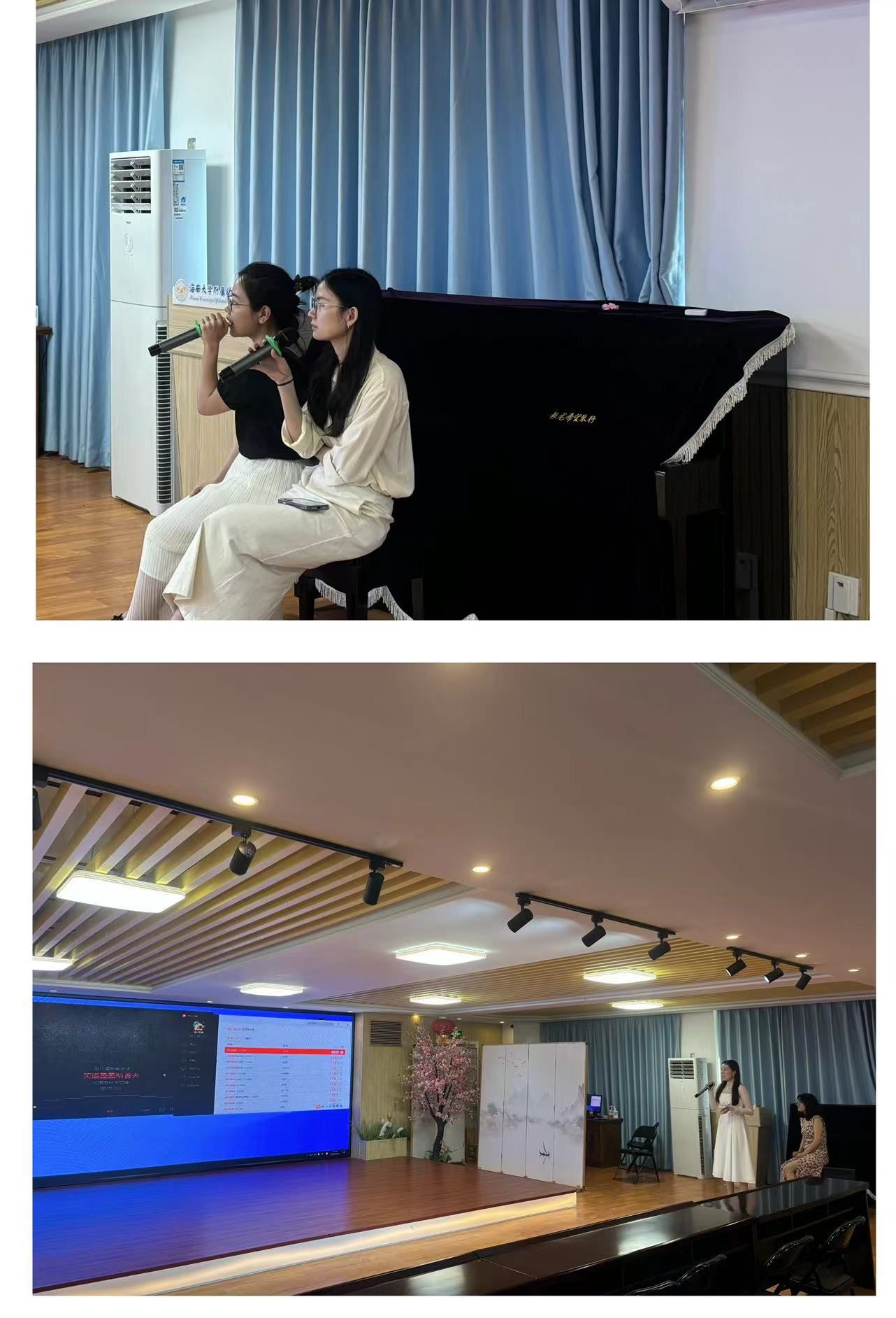现场氛围轻松愉快,温柔恬静的女生合唱,婉转动听的美声独唱,还有零食、水果、饺子等美食……