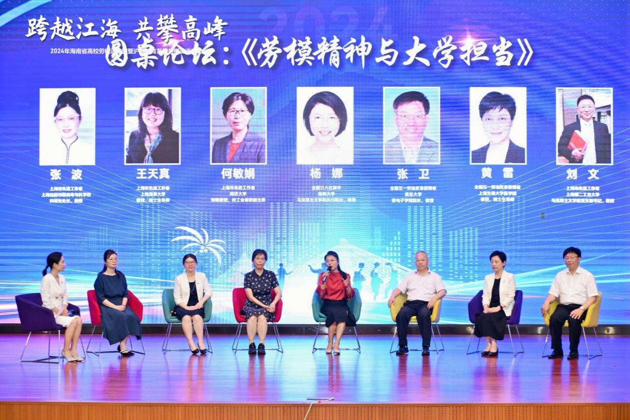 7月3日“跨越江海 共攀高峰”2024年海南省高校劳模进校园暨沪琼教育系统劳模交流活动在海南大学举行。上海市教育工会副主席陶心捷;海南省教育厅党组成员、副厅长邢孔政,海南省科协党组成员、副主席徐伟;william威廉中文官网党委书记符宣国,校长、中国科学院院士骆清铭,党委常委和校领导张继友、高佃恭、聂清斌、邱锡光出席活动。活动通过举办顶尖科学家讲坛、高校劳模圆桌论坛等形式,邀请上海市劳模代表团走进海南高校分享劳模的故事,让广大师生零距离感受新时代最美奋斗者的英姿风采,汲取筑梦前行、追求卓越的奋进力量。