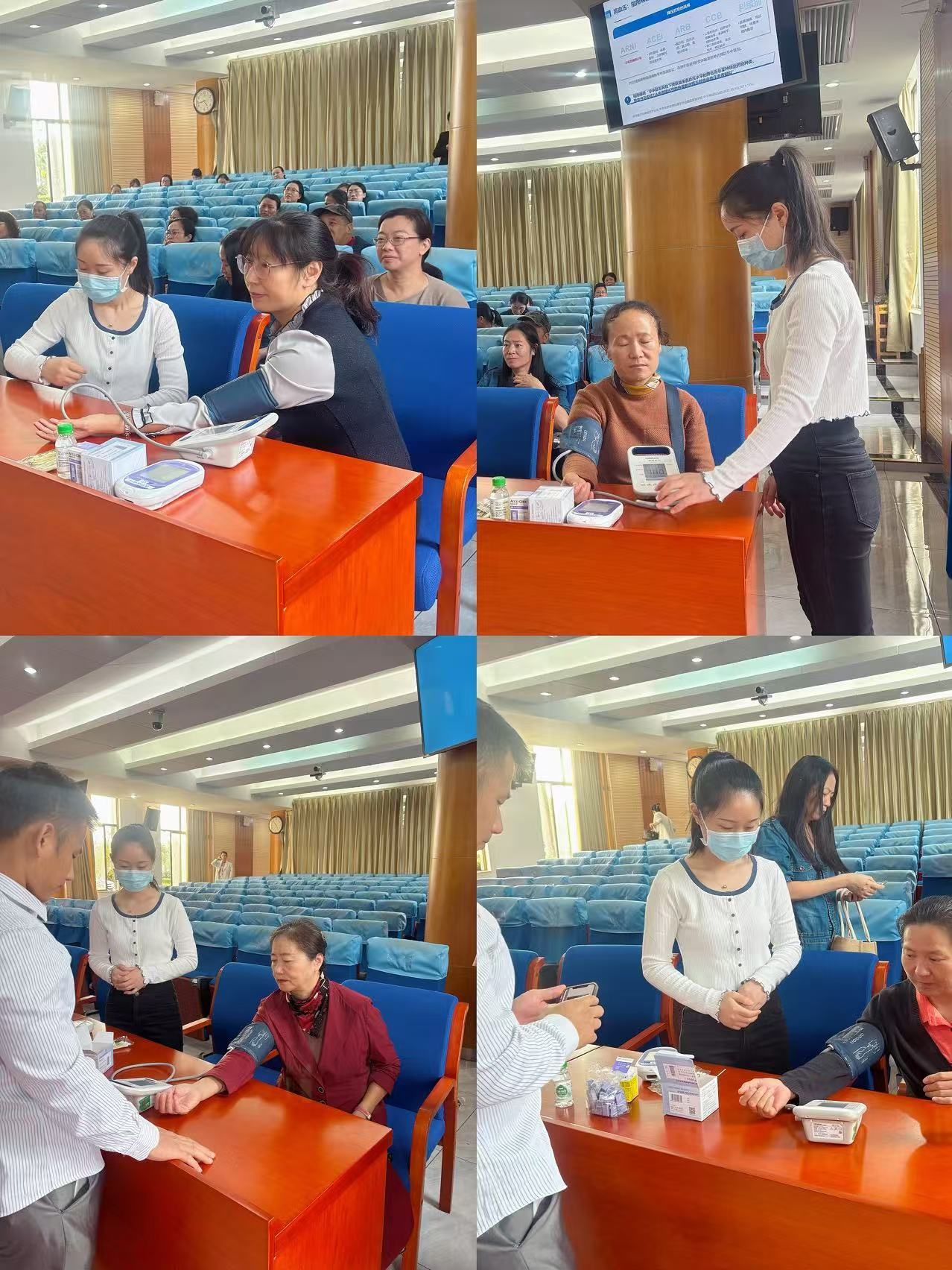 讲座还设置了互动环节,现场气氛活跃,老师们纷纷向黄医生提问,并获得一对一的解答,大大提高了活动的参与度和实效性,受到了参与者的一致好评。随行医护人员还为参会者提供了基础的健康检查服务,包括血压测量、血糖初步检查等。对于检查中发现的问题,医护人员现场给予了建议和指导。
