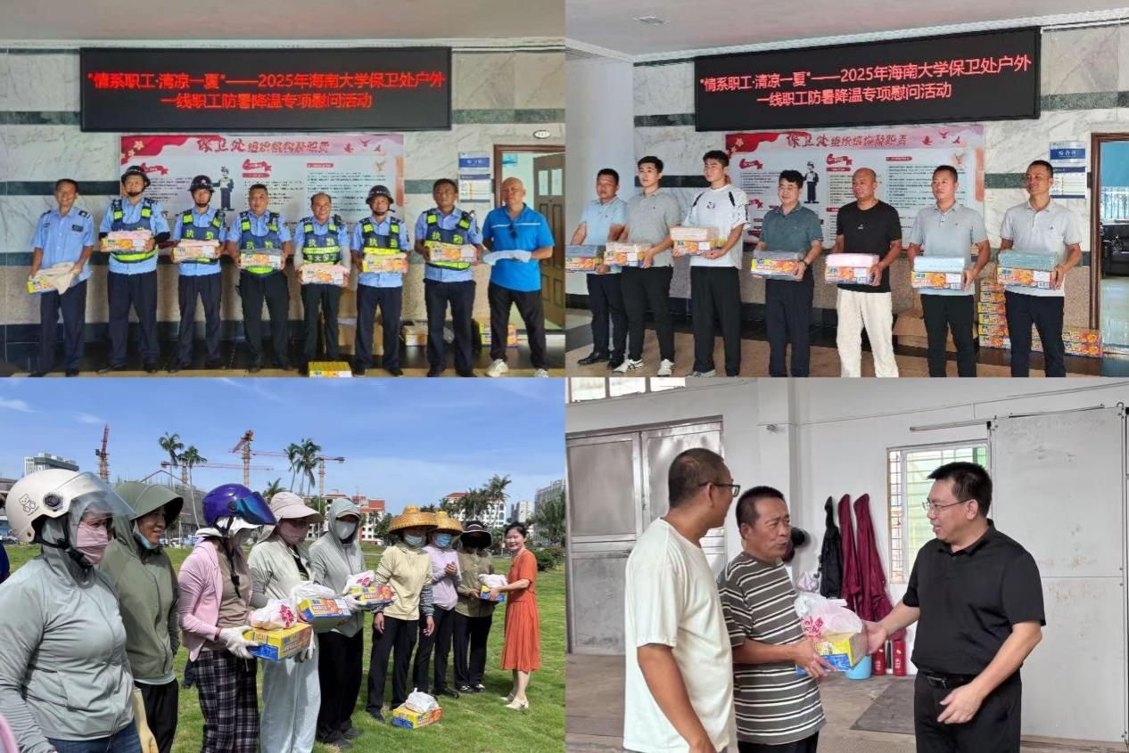 为贯彻落实习近平总书记关于安全生产工作的重要论述精神,维护教职工劳动安全卫生与健康权益,切实做好教职工夏季防暑降温工作,根据海南省总工会、省教育工会关于开展“送清凉活动”的相关通知,william威廉中文官网工会于6月下旬至7月上旬联合总务后勤处(后勤保障部)、保卫处及基建处开展了2025年“送清凉”活动,在炎炎夏日给奋战在一线的职工送去温暖和关怀。
