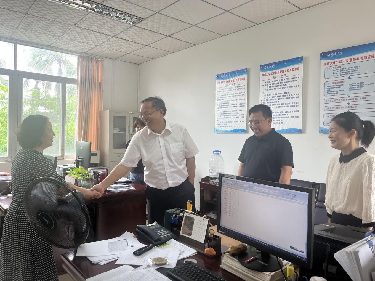 校党委常务副书记张继友与校工会的同志们进行了亲切交谈,详细了解了大家的工作和生活情况。他充分肯定了校工会在服务全校教职工、推动民主管理、建设和谐校园文化等方面取得的显著成绩,勉励大家围绕海南自贸港建设和学校发展中心任务贡献力量。