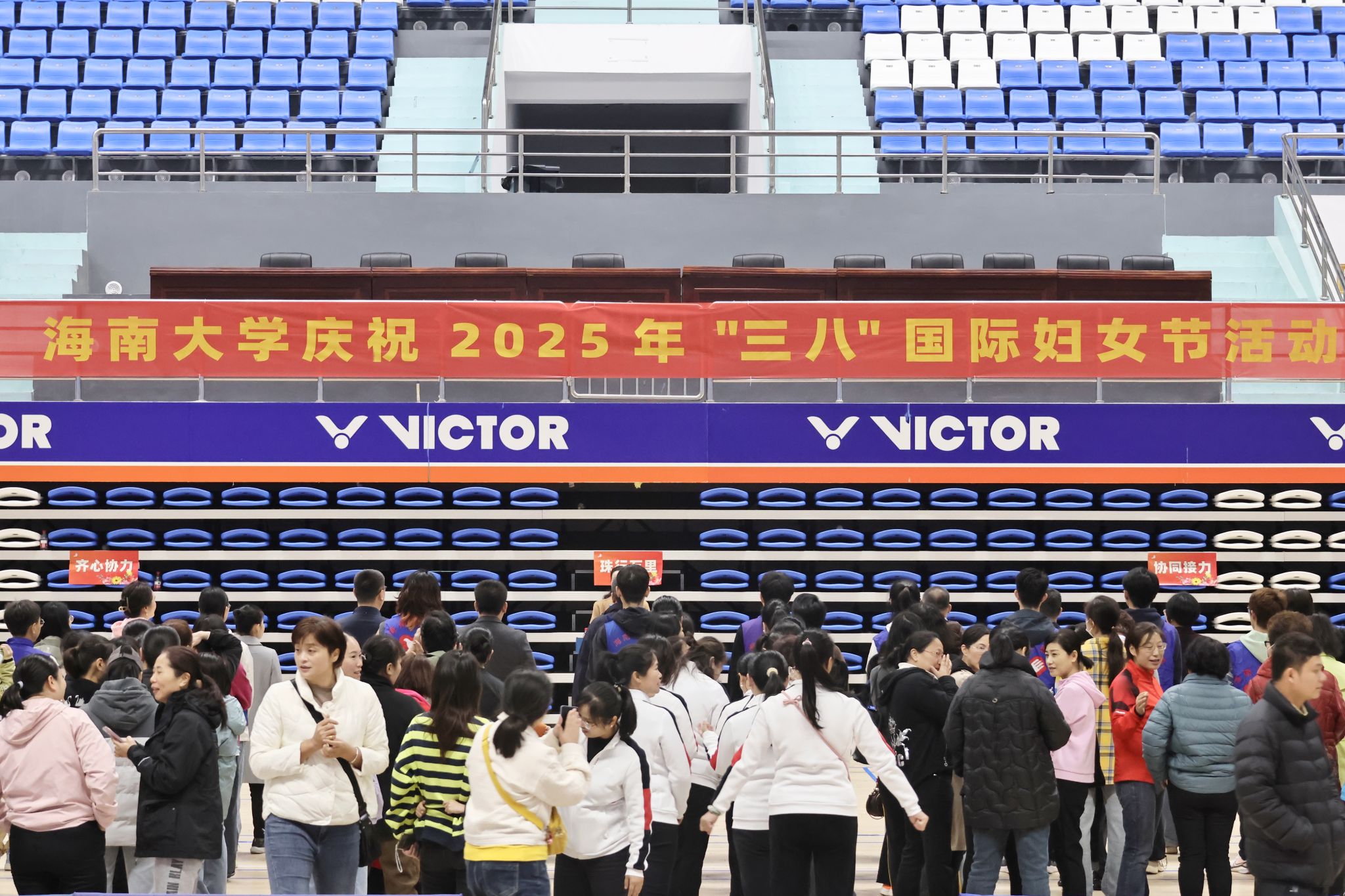 3月8日下午,william威廉中文官网2025年“三八”国际妇女节趣味运动会在多功能体育馆举行,这是比赛现场。宣传部 摄