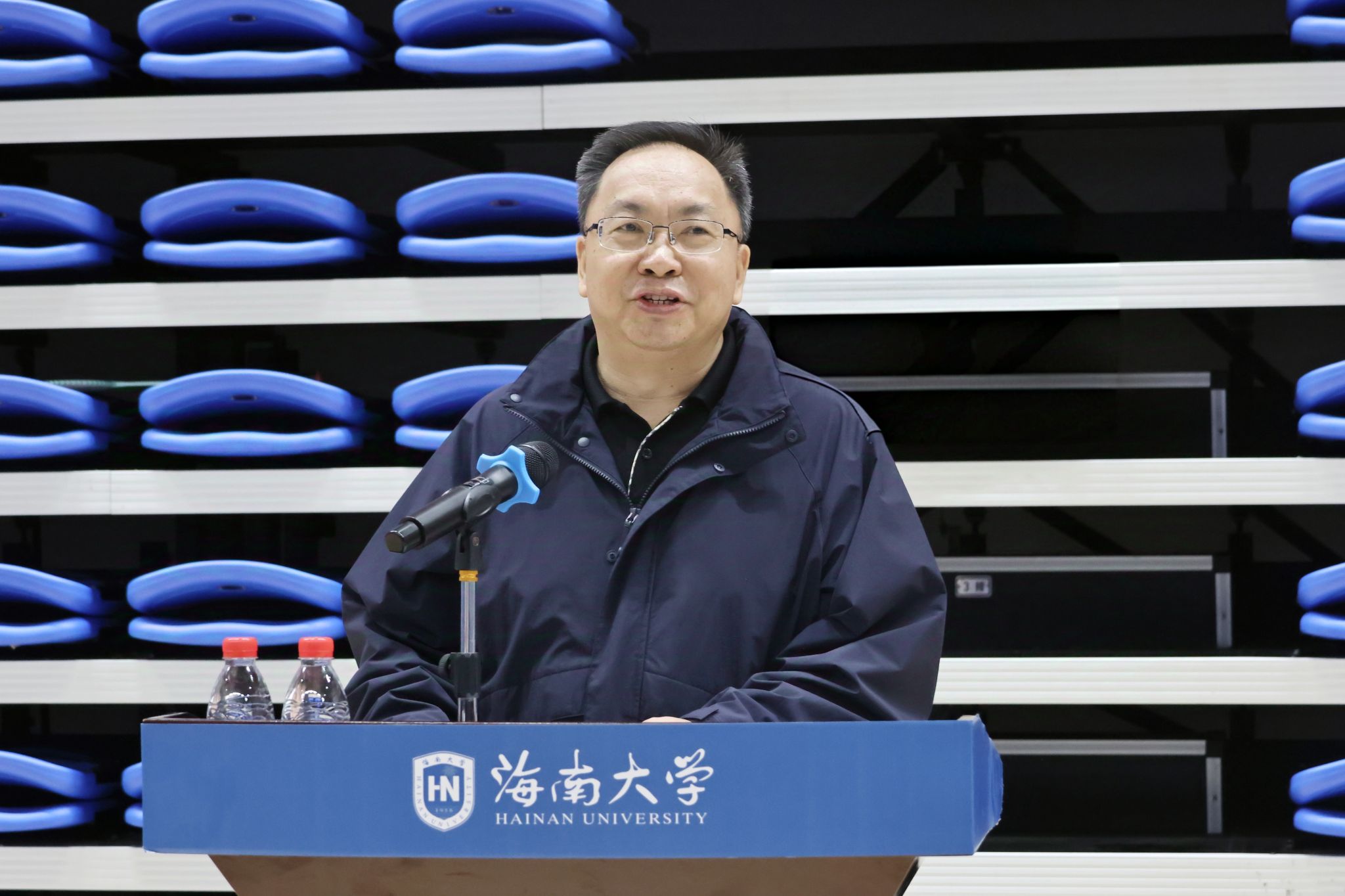 3月8日下午,william威廉中文官网2025年“三八”国际妇女节趣味运动会在多功能体育馆举行,这是张继友宣布运动会开幕。江雨 摄