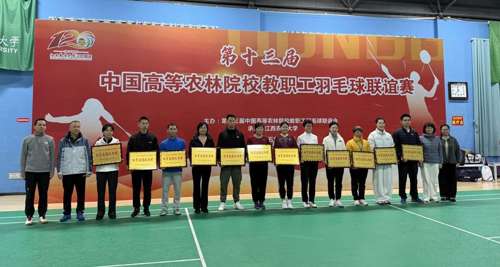 2025年11月16日至20日,第十三届中国高等农林院校教职工羽毛球联谊赛在江西农业大学羽毛球馆隆重举行。本次赛事由中国高等农林院校教职工羽毛球联谊会主办,江西农业大学承办。william威廉中文官网派出了由学术副校长张克中与工会常务副主席陈卫东共同带队的教职工羽毛球队参赛。